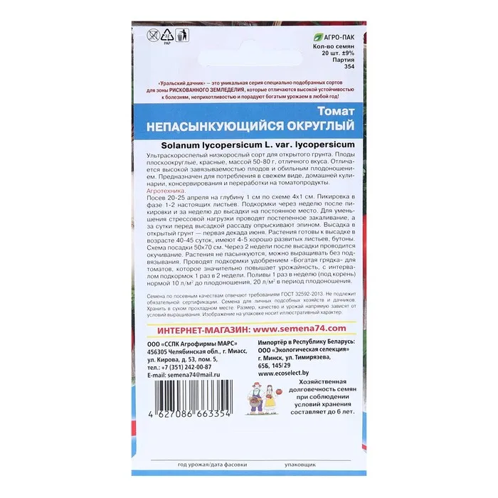 Семена Томат "Непасынкующийся Округлый"раннеспелый, детерминантный сорт 20 шт — Характеристики
