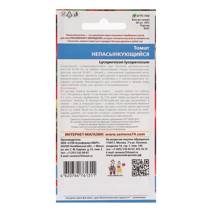 Семена Томат "Непасынкующийся" скороспелый, набор 5 шт — Характеристики