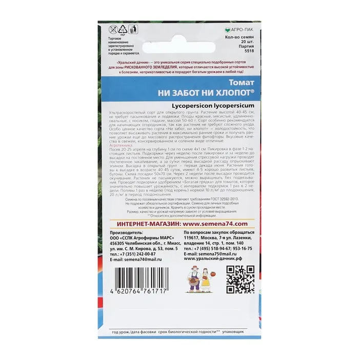 Особо ценное качество сорта «Ни забот, ни хлопот» — холодостойкость, что позволяет высаживать растения в максимально ранние сроки и получать ранние урожаи ещё до массового распространения фитофторы. Вкусовые качества в свежем, консервированном и солёном виде отличные.