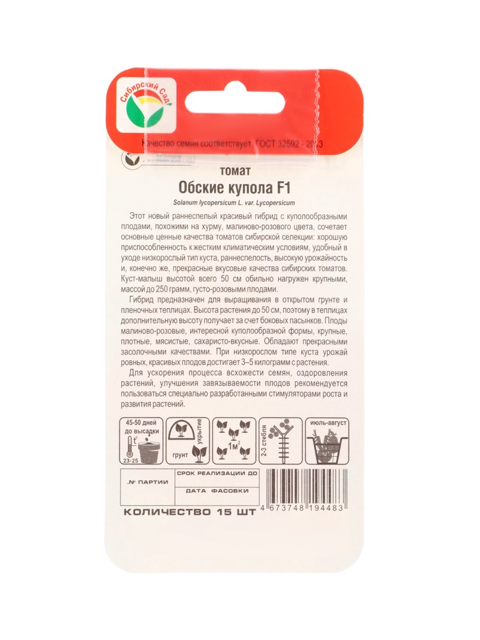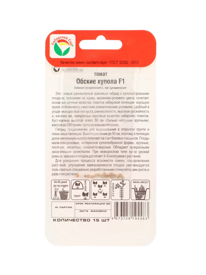 Семена Томат «Обские купола», F1, 15 шт., «Сибирский сад» — Характеристики