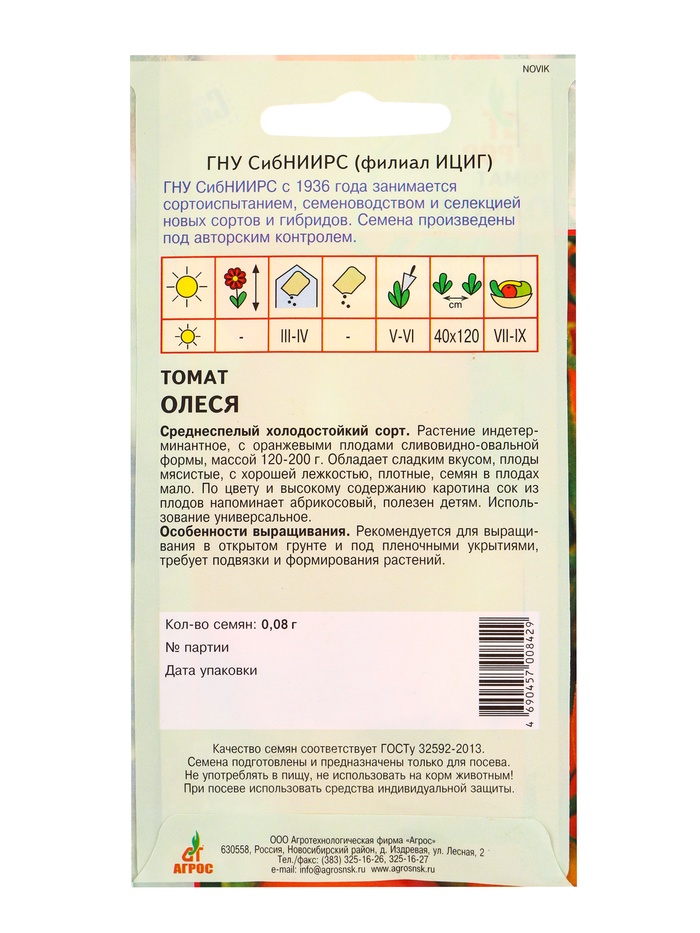 Семена Томат «Олеся», 0.08 г, «Агросс» — Характеристики