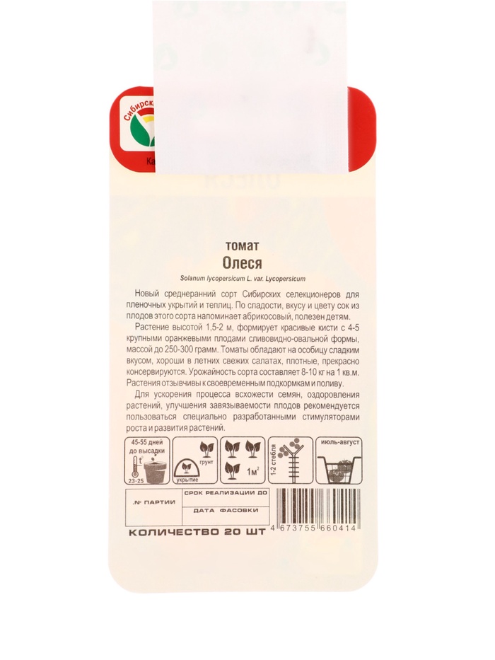 Семена Томат «Олеся», 20 шт., «Сибирский сад» — Характеристики