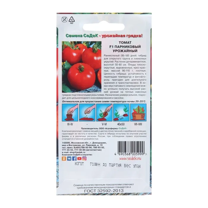 Семена Томат "Парниковый урожайный F1", 0,05 г — Характеристики