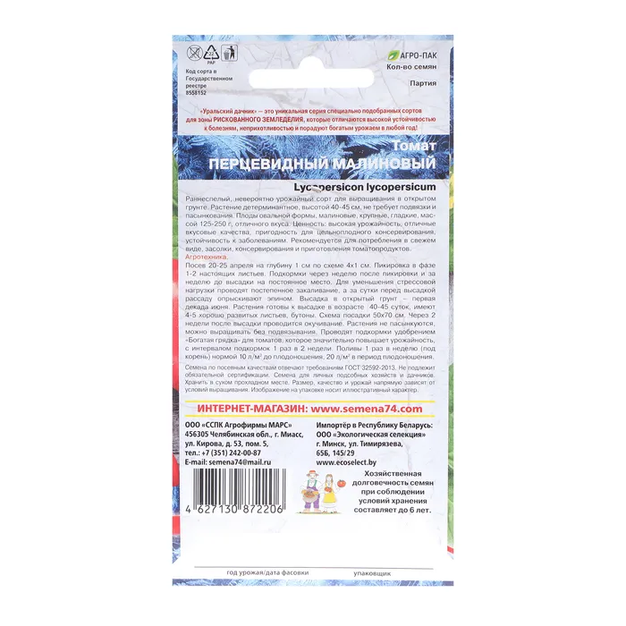 Семена Томат "Перцевидный Малиновый", 20 шт — Характеристики
