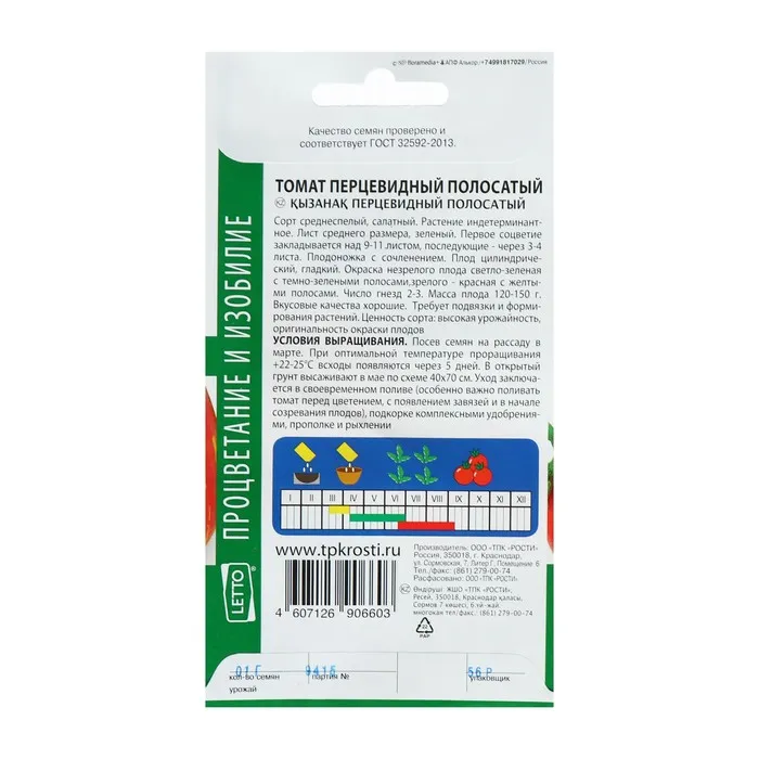 Среднеспелый индетерминантный сорт для открытого грунта удивит богатым урожаем красивых и вкусных плодов перцевидной формы. Томаты формируются в кистях от 5 до 9 шт. Плоды с плотной мякотью и набольшим количеством семян. Вкус - отличный, сладкий! Используются в свежем виде и для фарширования, подходят для цельноплодного консервирования. Первое соцветие закладывается над 9-11 листом, последующие - через 3 листа. Растения требуют формирования и подвязки. Урожайность - 6-6,5 кг/м.кв.