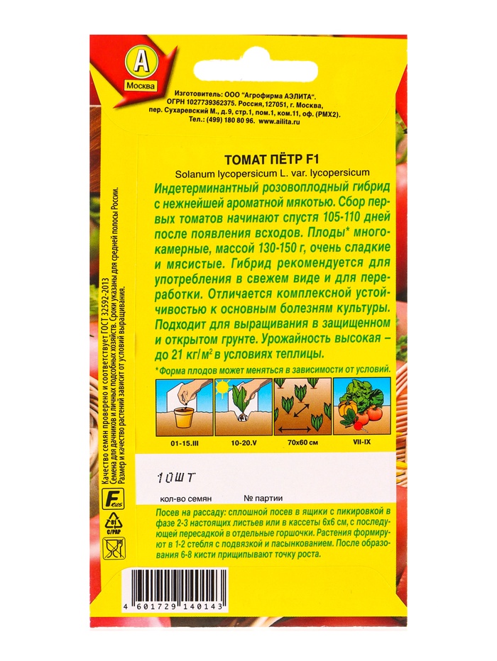 Семена Томат Петр F1 Р, Ц/П,10 шт. — Характеристики