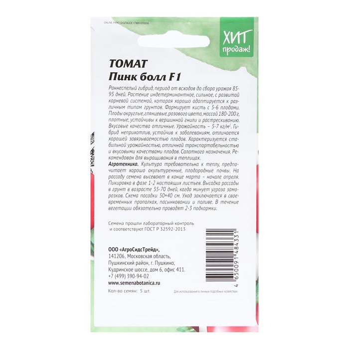 Пинк Болл F1 – ранний индетерминантный гибрид томата (85-95 дней от всходов до начала созревания). Рекомендуется для выращивания в первом и втором обороте пленочных теплиц и во втором обороте остекленных теплиц. Корневая система мощная, отлично адаптируется к различным типам грунтов и субстратов. Растение сильное, сбалансированное, лист от среднего до крупного, темно-зеленый, расположение полугоризонтальное. Первое соцветие закладывается над 10-12 листом, последующие через 3 листа. Соцветие простое или промежуточного типа с 5-6-ю плодами.