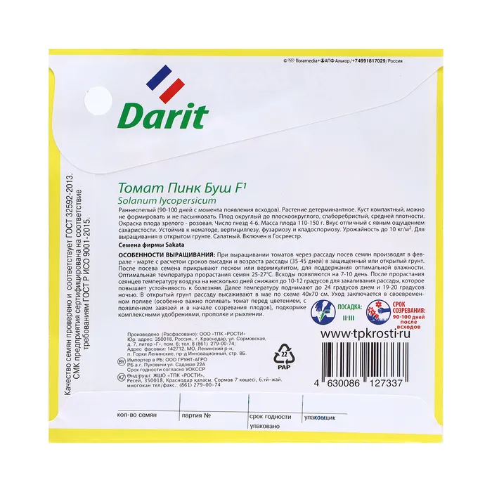Семена Томат Пинк Буш F1, семена Дарит Black Edition 8шт — Характеристики