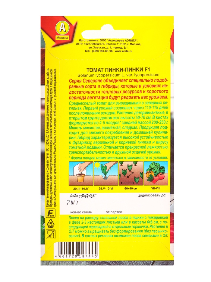 Семена Томат «Пинки-Пинки», F1, «Северяне - АЭЛИТА», 7 шт. — Характеристики
