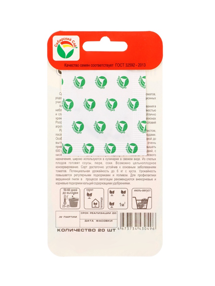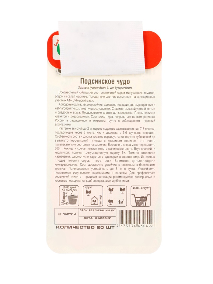 Семена Томат «Подсинское чудо», 20 шт., «Сибирский сад» — Характеристики