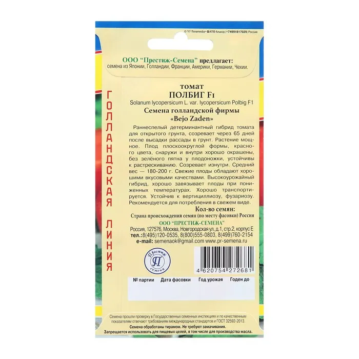 Семена Томат "Полбиг F1", ц/п, 10 шт. — Характеристики