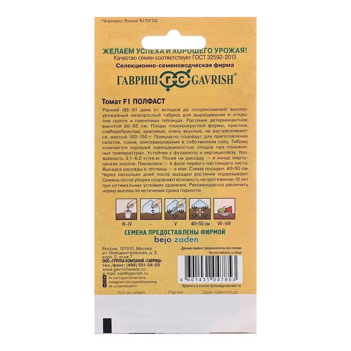 Семена Томат "Полфаст", F1, 10 шт. — Характеристики