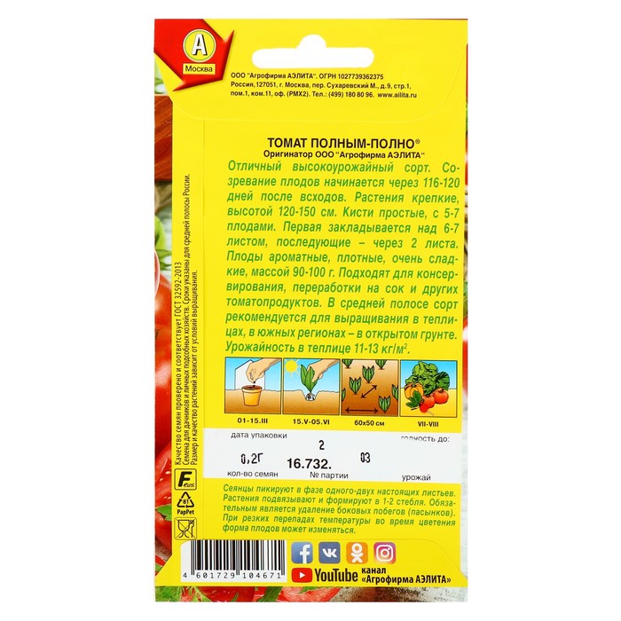 Штамбовый индетерминантный сорт с высокой урожайностью – 11-13 кг/м2. В средней полосе рекомендуется для выращивания в пленочных теплицах, в более южных регионах – в открытом грунте, в шпалерной культуре или с подвязкой к кольям. Созревание плодов начинается через 116-120 дней после появления всходов. Растения мощные, с укороченными междоузлиями, средневетвистые, сильнооблиственные, высотой около 120 см. Кисти простые с 5-7 плодами; первая закладывается над 6-7 листом, последующие – через 2 листа. Плоды округлые, плотные, гладкие или слегка ребристые, ароматные, средней массой 90-100 г. Вкусовые качества высокие. Для свежего потребления, консервирования, переработки на сок и другие томатопродукты.