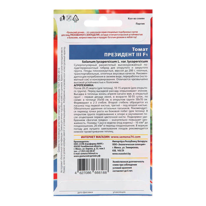 Семена Томат «Президент 3», F1, 12 шт., «Уральский Дачник» — Характеристики