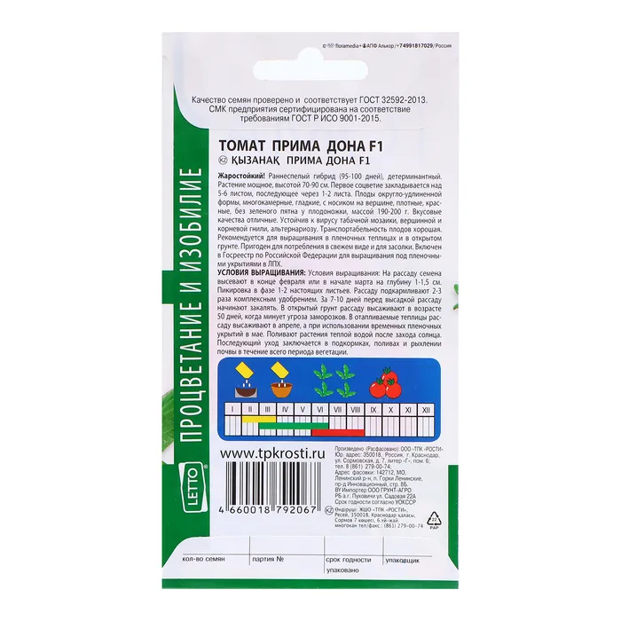 Семена Томат Прима Дона F1, семена Агроуспех 0,05г — Характеристики