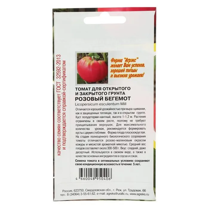 Очень вкусный салатный биф-томат. В средней полосе и северных регионах рекомендуется для пленочных теплиц, в южных регионах – для открытого грунта. Сорт среднеранний, вступает в плодоношение через 110-115 дней от всходов. Растения детерминантные, высотой 100-120 см, с умеренной облиственностью. Первая кисть закладывается после 8 листа, последующие – через 1-2 листа. Плоды крупные, массой 300-500 г. Мякоть ароматная, сахарная на разломе. Вкус насыщенно-сладкий. Сорт устойчив к резким перепадам дневных / ночных температур.