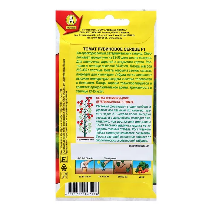 Семена Томат Рубиновое сердце F1 Р Мир высокого урожая Ц/П 15шт — Характеристики