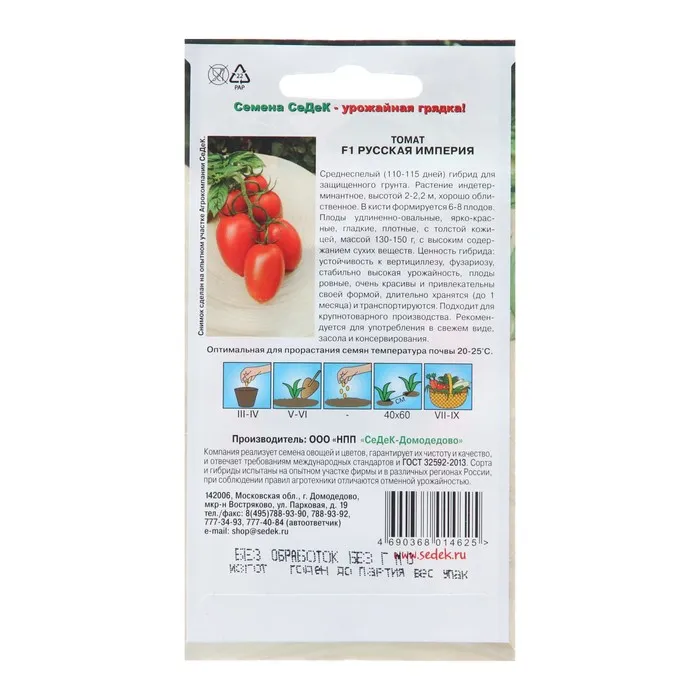 Семена Томат "Русская империя F1", 0,05 г — Характеристики