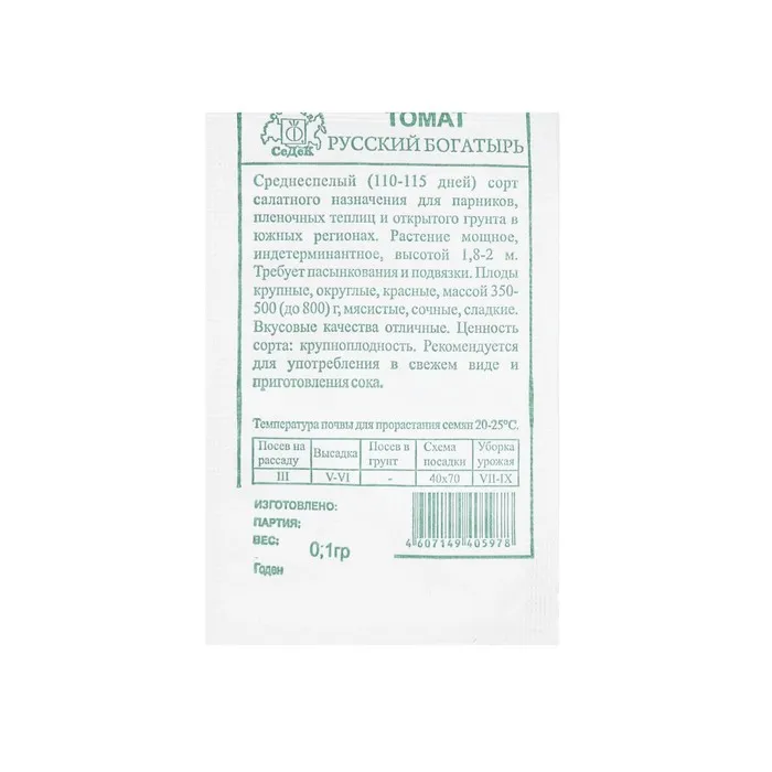 Семена Томат "Русский богатырь " б/п 0.1 г — Характеристики
