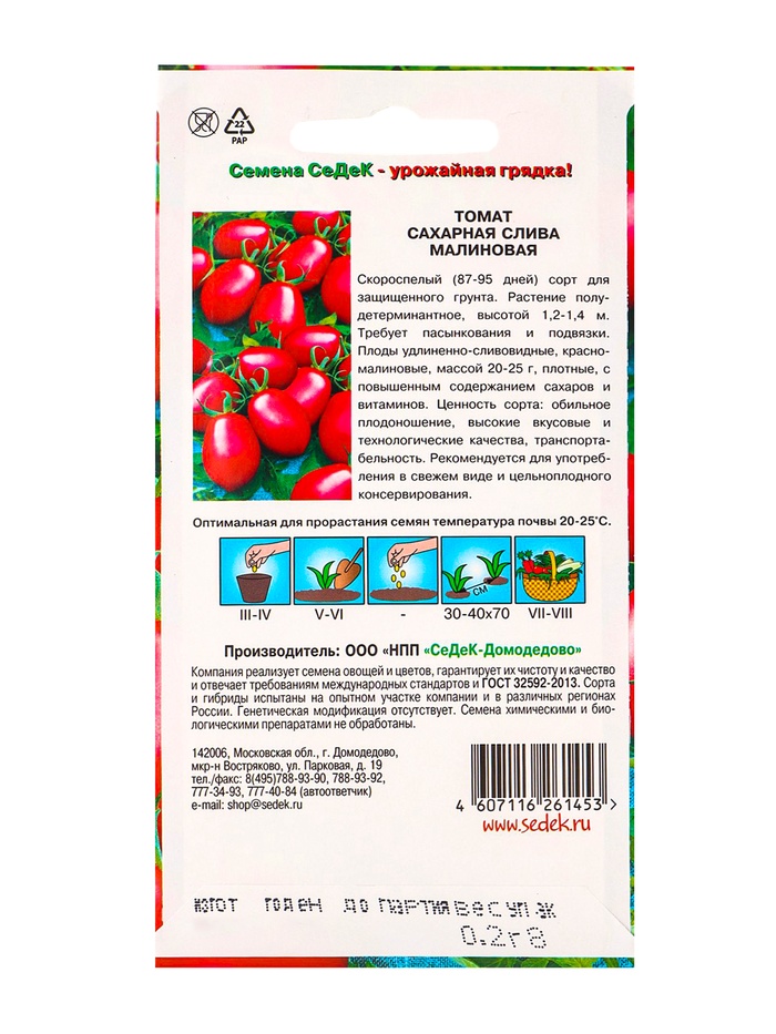 Семена Томат "Сахарная слива малиновая", 0,2 г — Характеристики