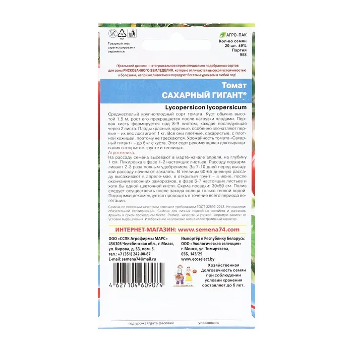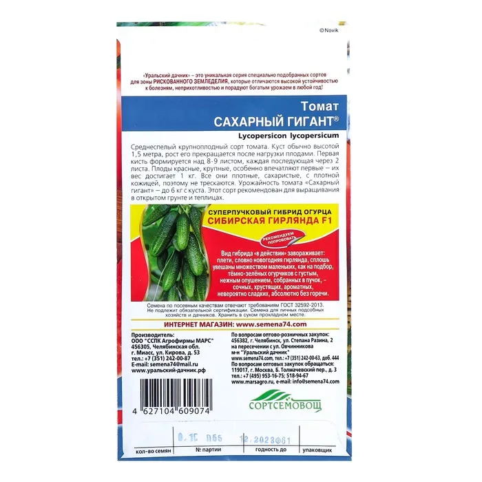 Семена Томат "Сахарный Гигант" крупноплодный до 600 г, розово-красный, 20 шт — Характеристики