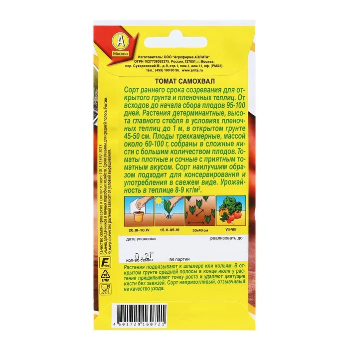 Посев на рассаду производят за 60-70 дней до высадки растений на постоянное место. Оптимальная постоянная температура прорастания семян 23-25 °С. При высадке в грунт на 1 кв. м размещают 2-3 растения. Сорт хорошо реагирует на полив и подкормки комплексными минеральными удобрениями. Требует усиленных подкормок. Выращивается в 1-2 стебля с подвязкой и пасынкованием. Для получения плодов-супергигантов регулируют количество кистей и растений в кисти.