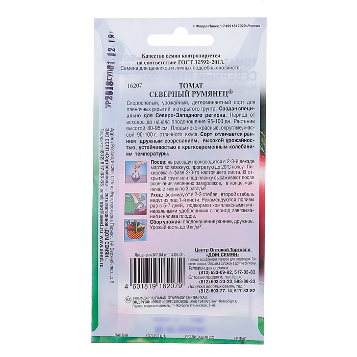 Семена Томат "Северный Румянец" select, скороспелый, 20 шт — Характеристики