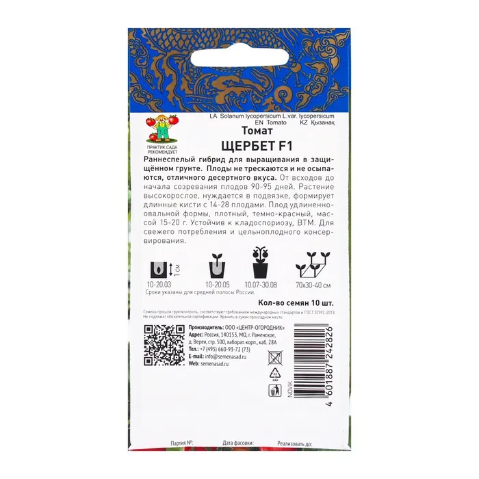 Представляем вам семена томатов "Щербет" — отличный выбор для всех любителей сочных и ароматных плодов. Эти семена позволят вырастить здоровые и вкусные томаты, которые станут украшением вашего стола или ингредиентом для кулинарных шедевров.
