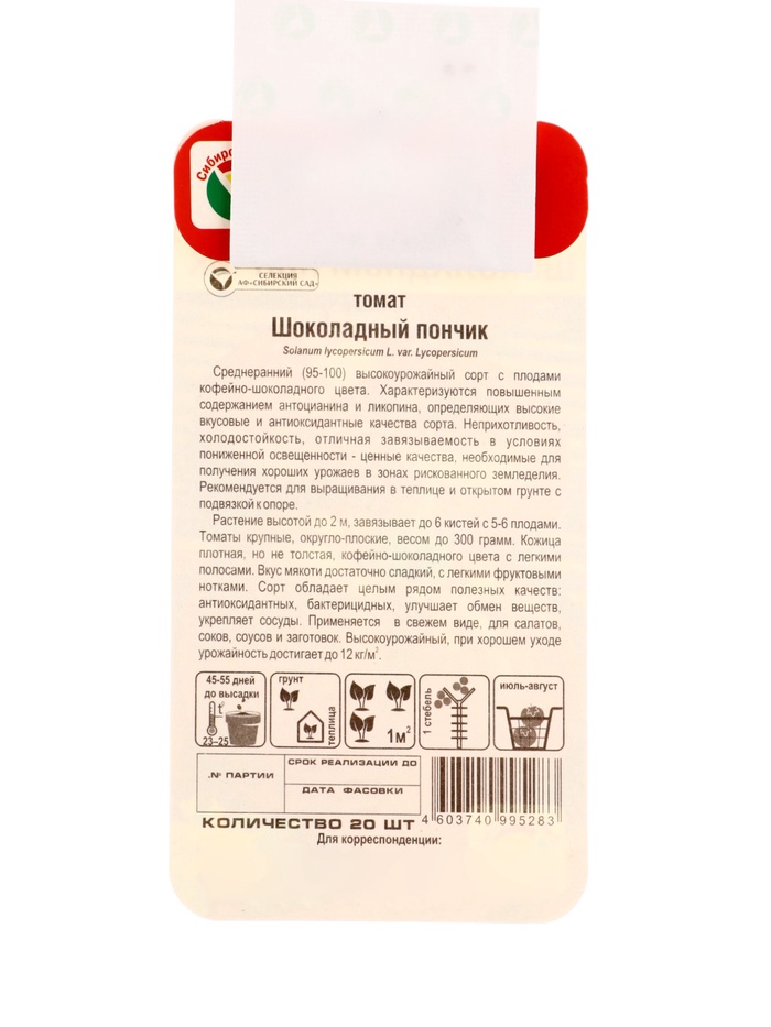 Семена Томат «Шоколадный пончик», 20 шт., «Сибирский сад» — Характеристики