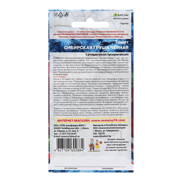 Семена Томат "Сибирская Груша", Черная, 20 шт — Характеристики