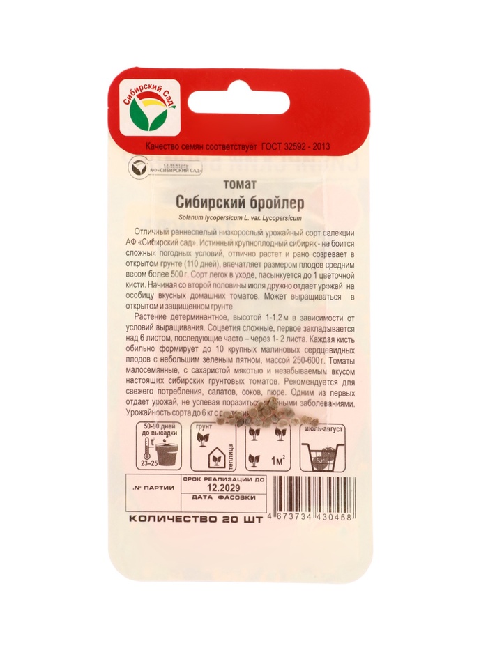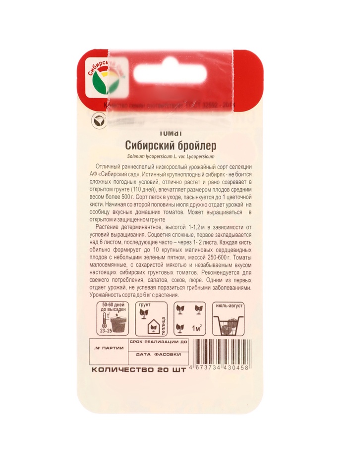 Семена Томат «Сибирский бройлер», 20 шт., «Сибирский сад» — Характеристики