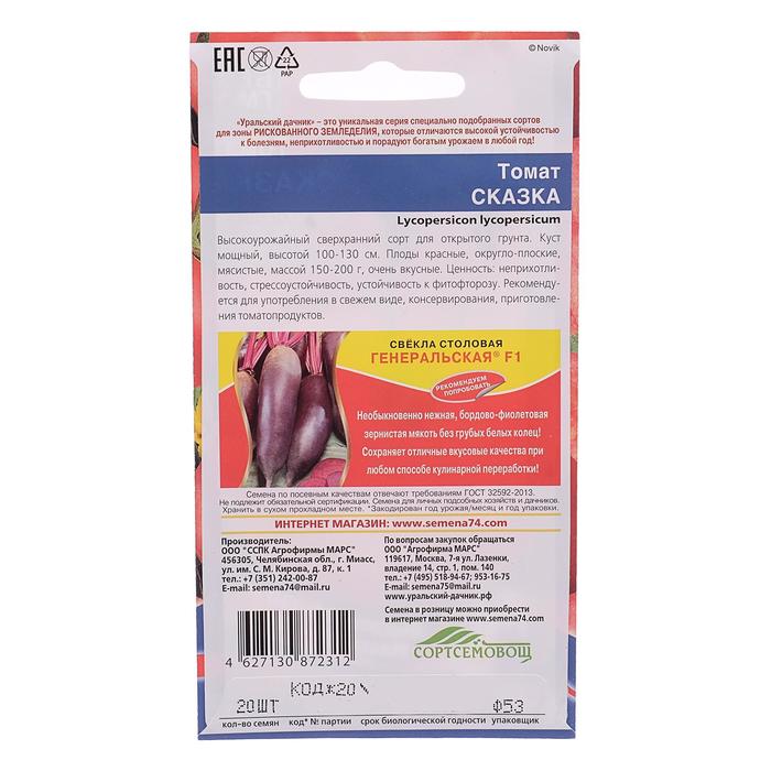 Высокоурожайный, сверхранний сорт для открытого грунта. Куст мощный, высотой 100-130 см. Плоды красные, округло-плоские, мясистые, массой 150-200 г, очень вкусные.