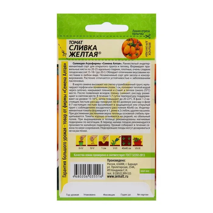 Селекция Агрофирмы «Семена Алтая». Отличные вкусовые качества плодов в любом виде. Сорт раннеспелый, индетерминантный. В кисти формируется по 20-25 плодов, идеально гладких, плотных, очень сладких, массой 15-18 г (до 20 г). Незаменимый сорт для засола и консервирования. Растение отличается устойчивостью к заболеваниям.