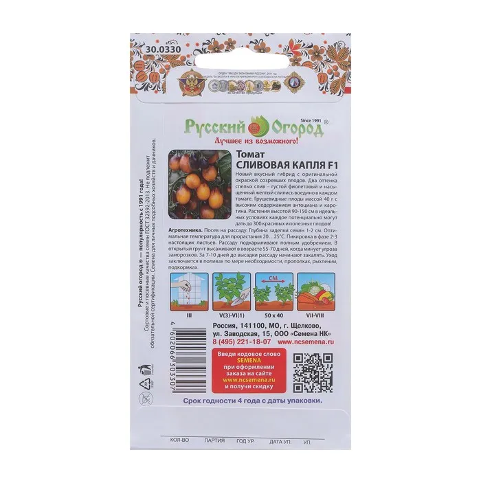 Новый вкусный гибрид с оригинальной окраской созревших плодов. Два оттенка спелых слив – густой фиолетовый и насыщенный желтый слились воедино в каждом томате. Грушевидные плоды массой по 40 грамм с высоким содержанием антоциана и каротина. Растения высотой 90-150 см в идеальных условиях каждое потенциально могут дать до 300 красивых и полезных плодов!