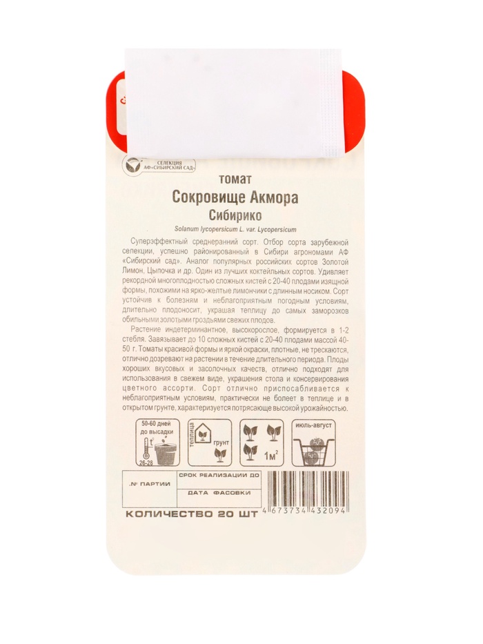Семена Томат «Сокровище Акмора», «Сибирико», 20 шт., «Сибирский сад» — Характеристики