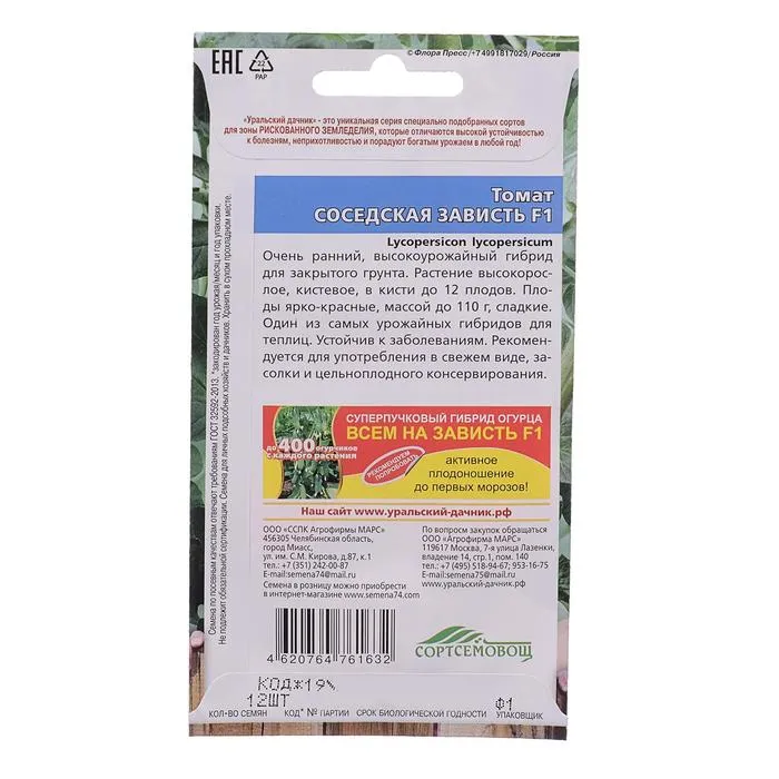Семена Томат "Соседская зависть", F1, индетерминантный,высокорослый,12 шт — Характеристики