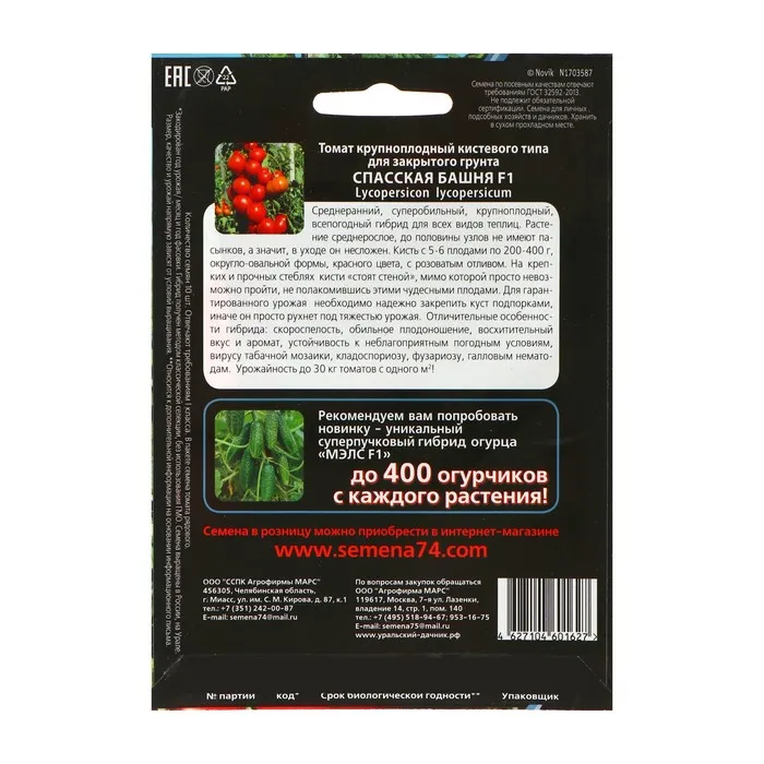 Семена Томат "Спасская Башня" F1 крупноплодный, среднеранний, детерминантный 10 шт — Характеристики