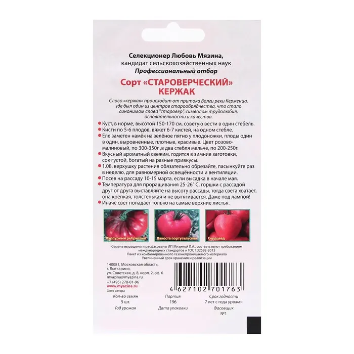 Семена Томат "Староверческий (Кержак)", 0.02 г — Характеристики