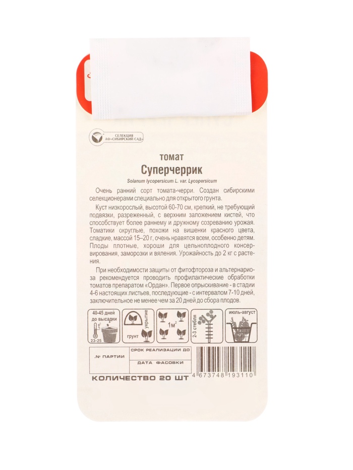 Семена Томат« Суперчеррик», 20 шт., «Сибирский сад» — Характеристики