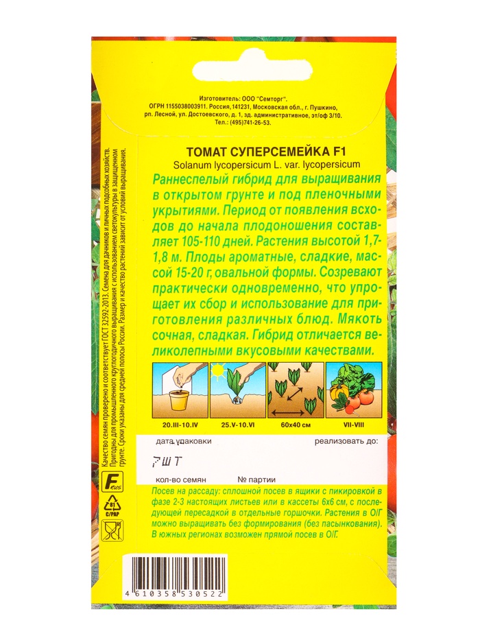Семена Томат «Суперсемейка», F1, «Семторг - Агрофирма АЭЛИТА», 7 шт. — Характеристики