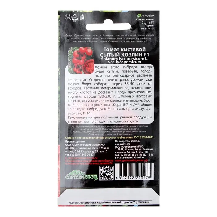 Хозяин этого гибрида всегда будет сытым, поверьте голодным это благодарное растение не оставит. Созревает очень рано, урожай уже можно будет собирать через 85-90 дней от всходов. Растение детерминантное, компактное, много хлопот не доставит. Плоды ярко красные, круглые, массой 180-230 г. Отличных вкусовых качеств, дегустационные оценки наивысшие. Урожайность за первых два сбора 6-7 кг/м², общая 17-19 кг/м². Гибрид устойчив к альтериариозу, фузариозу, ВТМ. Рекомендуется для получения ранней продукции в пленочных теплицах и открытом грунте.