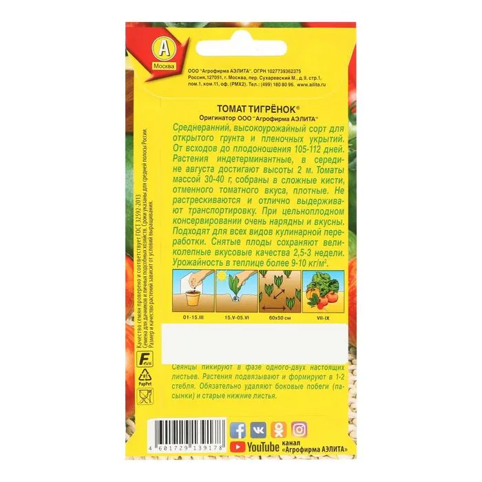 Среднеранний высокоурожайный сорт для открытого грунта и пленочных теплиц. Период от всходов до плодоношения 105-112 дней. Растения индетерминантные, высотой 1,2-1,6 м. В каждой кисти завязывается 8-12 плодов. Томаты округлые, оригинальной окраски, массой 30-80 г, плотные, не растрескиваются. Вкусовые качества отличные. Прекрасно подходят для цельноплодного консервирования, свежего потребления и кулинарной переработки. Плоды хорошо транспортируются и хранятся, долго сохраняя великолепные товарные качества.