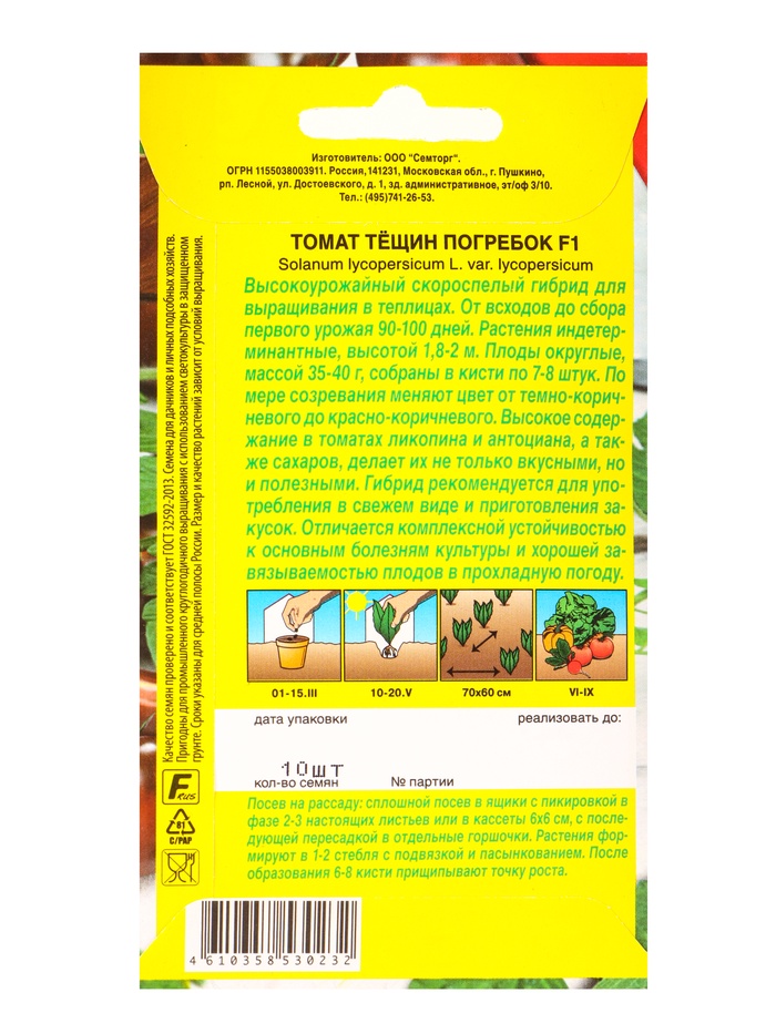 Семена Томат «Тёщин погребок», F1, «Семторг - Агрофирма АЭЛИТА», 10 шт. — Характеристики