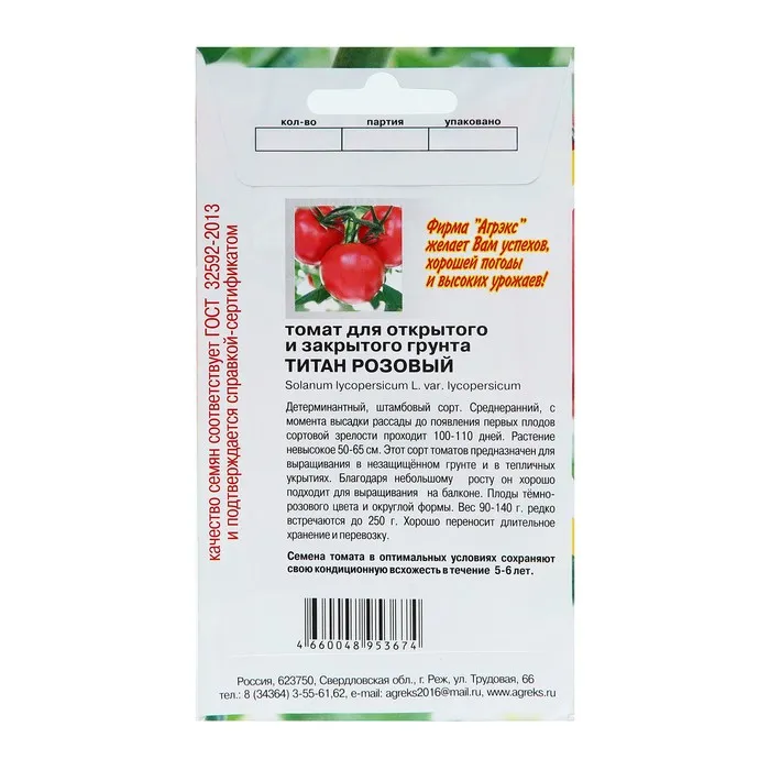 Семена Томат "Титан розовый", 20 шт — Характеристики