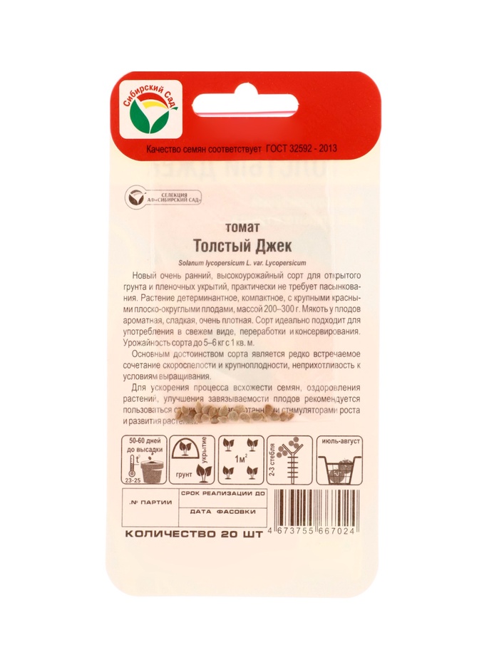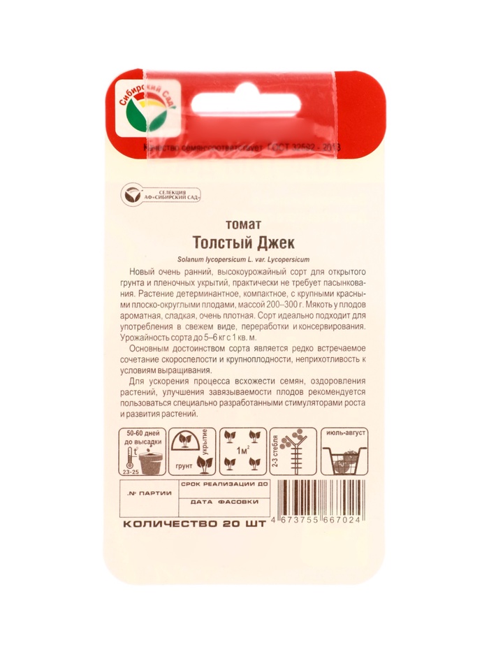 Семена Томат «Толстый Джек», 20 шт., «Сибирский сад» — Характеристики
