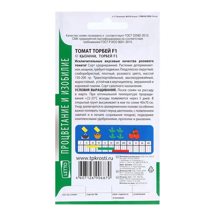 Воспользуйтесь возможностью насладиться обильным урожаем ранних красных томатов, которые подойдут как для свежего употребления, так и для заготовок. «Торбей» — это ваш надежный помощник в создании богатого и полезного овощного сада.