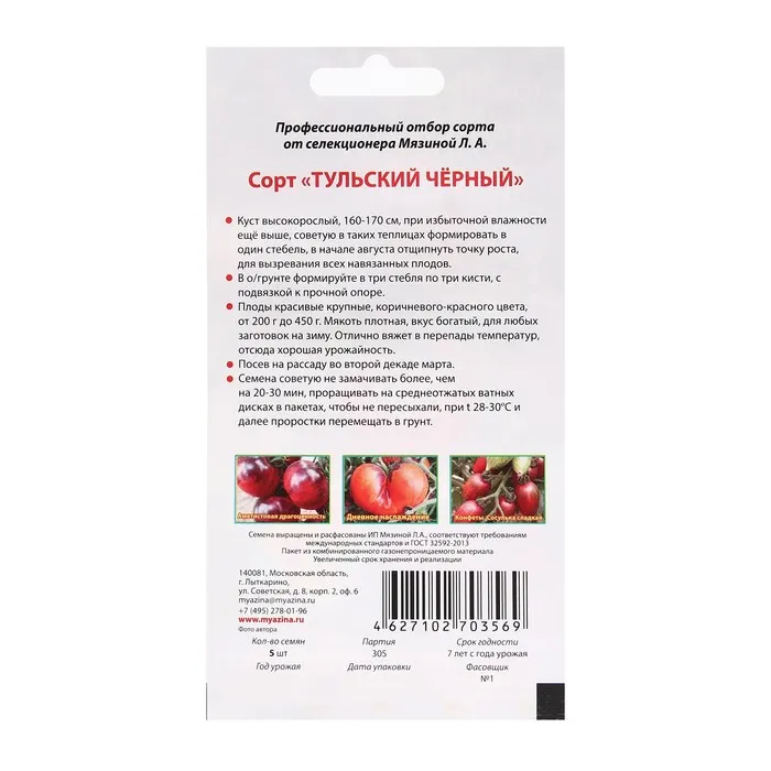 Семена Томат "Тульский черный", 5 шт — Характеристики
