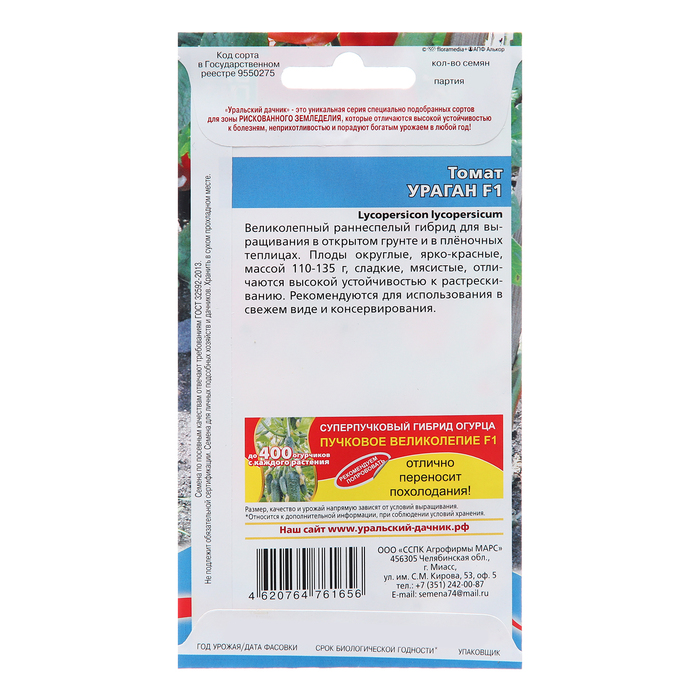 Семена Томат «Ураган», 20 шт., «Уральский Дачник» — Характеристики