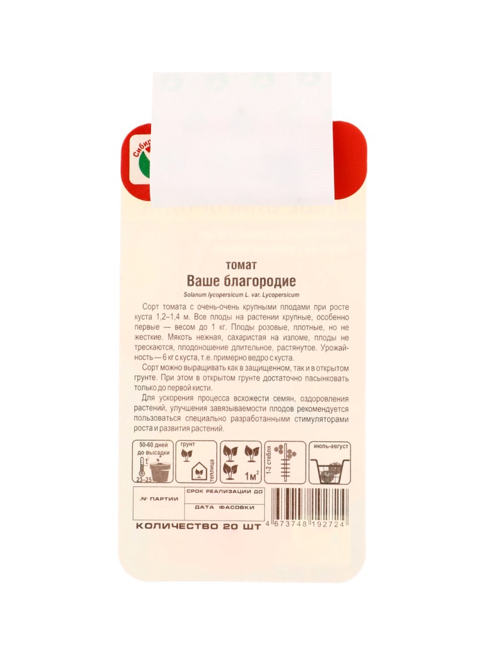 Семена Томат «Ваше благородие», 20 шт., «Сибирский сад» — Характеристики