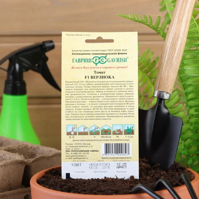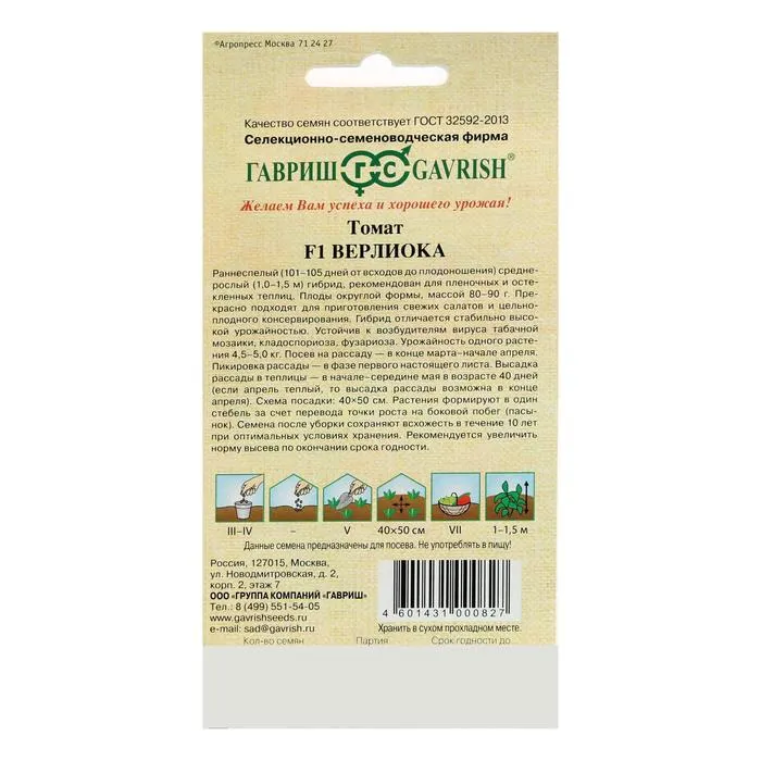 Семена Томат "Верлиока" F1, скороспелый,детерминантный,среднерослый, 12 шт. — Характеристики
